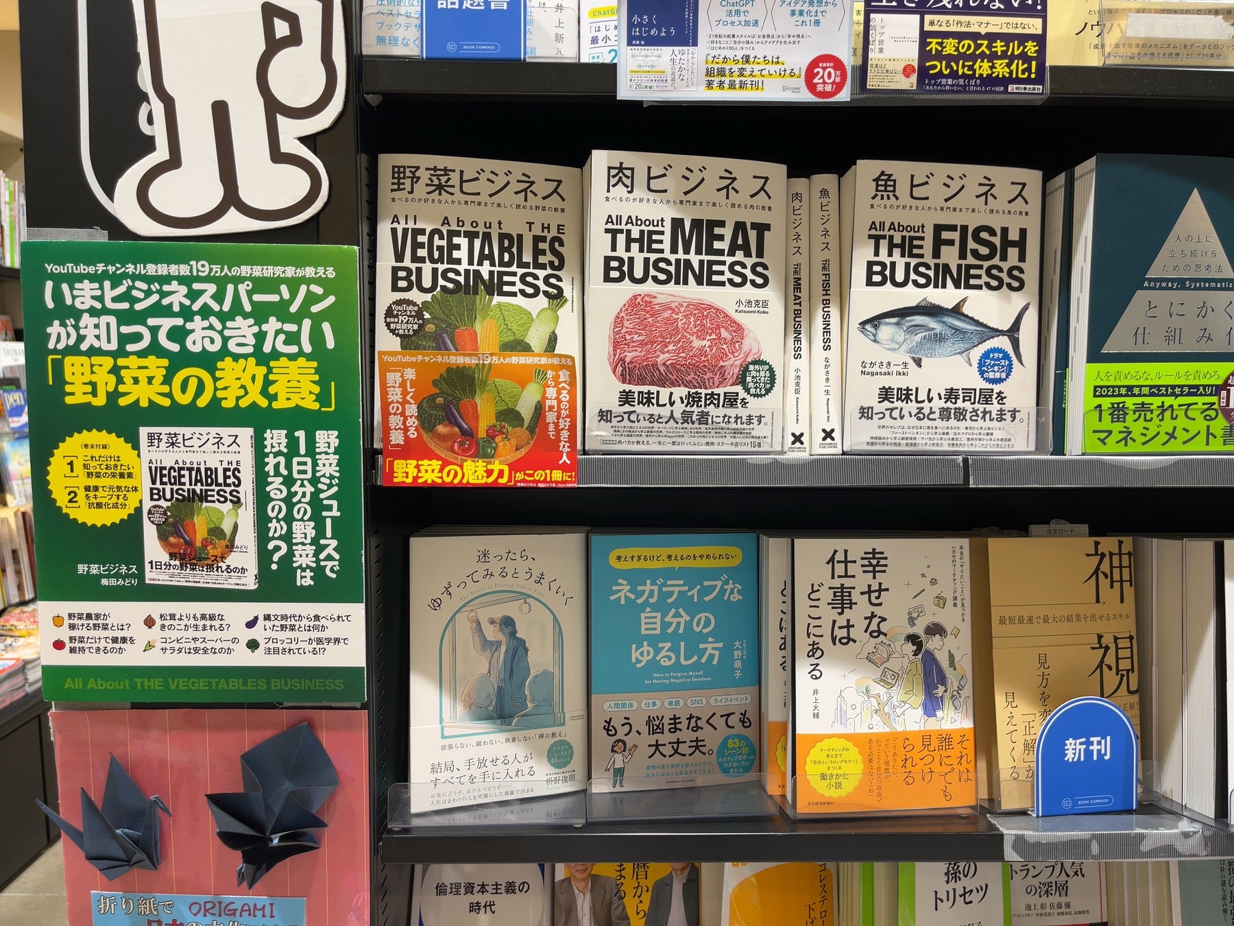 第1弾の『魚ビジネス』から、熱烈な支持を受けて、『肉ビジネス』『野菜ビジネス』とシリーズ化しました。数々の書店で、シリーズ3書籍の「おいしそうな展開」をしていただいています。