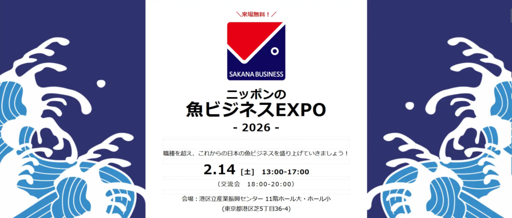 2026年2月14日(土)、港区立産業振興センターにて「ニッポンの魚ビジネスEXPO 2026」が開催されました。今回は総勢約360名の方が来場され、盛況に終わりました。