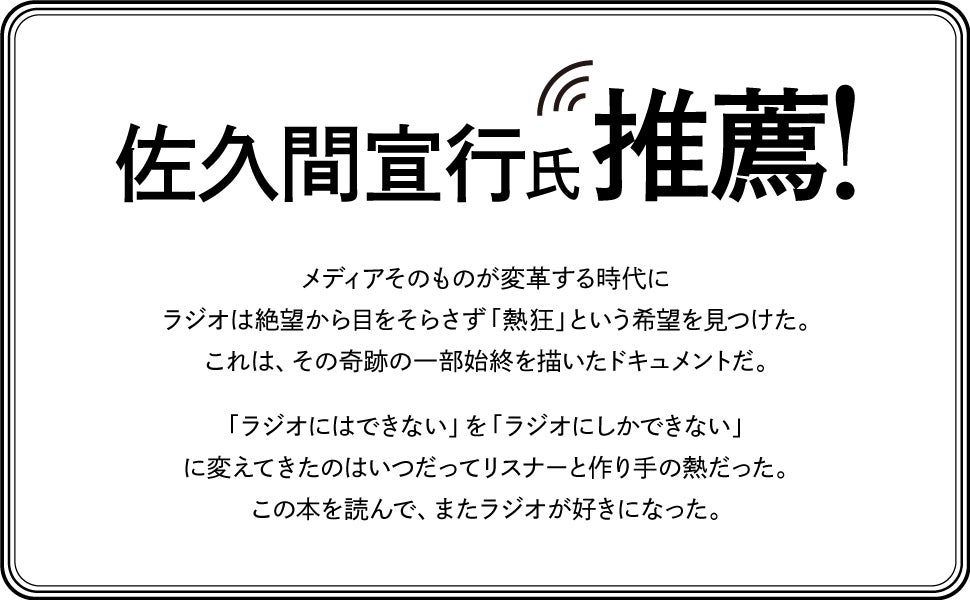 冨山さんから原稿を受け取ったとき、「これは何が何でも世の中に届けなければいけない内容だ」と手が震えた記憶があります。著者の冨山さんをはじめ、多くの人の想いをつないできたラジオの歴史を体感していただければ嬉しいです。