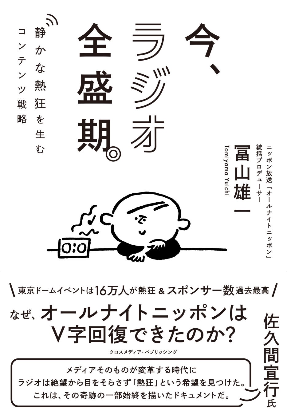 ビジネス書や実用書を中心に出版する株式会社クロスメディア・パブリッシング(本社:東京都渋谷区、代表取締役社長:小早川幸一郎)は、2025年1月31日に書籍『今、ラジオ全盛期。 静かな熱狂を生むコンテンツ戦略』を刊行いたしました。本書では、オールナイトニッポン統括プロデューサー・冨山雄一さんが、同番組がV字回復を果たした20年間の軌跡を紐解きながら、ラジオならではの「静かな熱狂」を生むコンテンツ戦略について解説します。ラジオが好きな方はもちろん、コンテンツ制作に関わっている方、マーケティングに関わっている方、「顧客との関係性」について悩んでいる方など、多くの方にとって新たな気づきやインスピレーションにつながる一冊です。