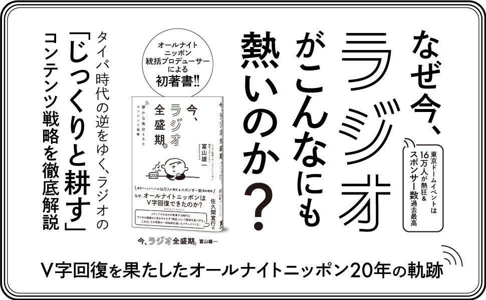 【タイパ時代を逆行するコンテンツ戦略】オールナイトニッポン統括プロデューサーが明かす、同番組がV字回復した20年の軌跡。書籍『今、ラジオ全盛期。』本日発売