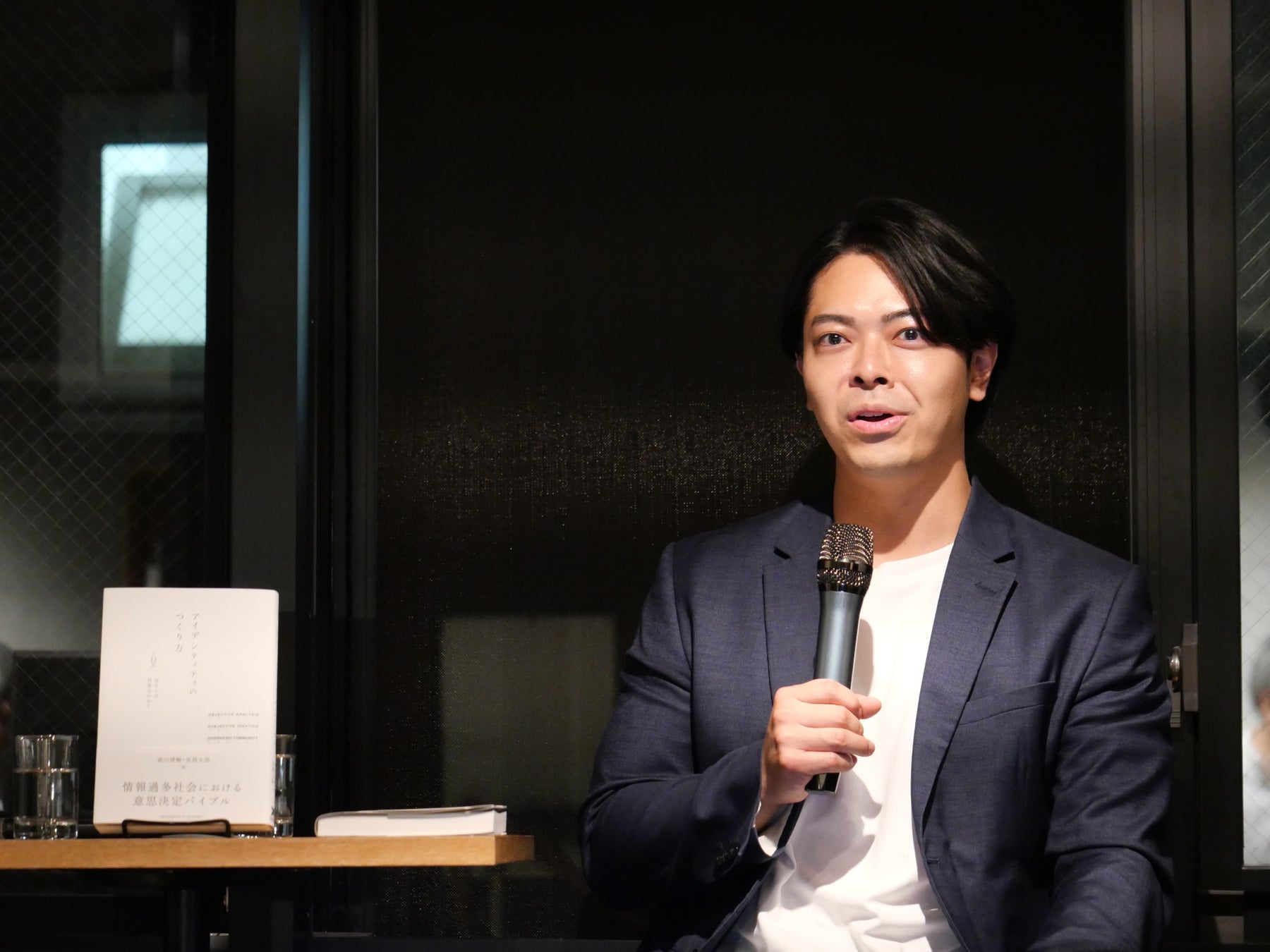 森山氏は元ゴールドマンサックスのトレーダー、各務氏は元電通のクリエイター。本書では、専門領域のまったく違う二人が、定量思考と定性思考を行き来しながら、アイデンティティ形成のための実践的アプローチについて語っています。本イベントでも、両者の視点が掛け合わされることで、拡がりのある議論がなされました。