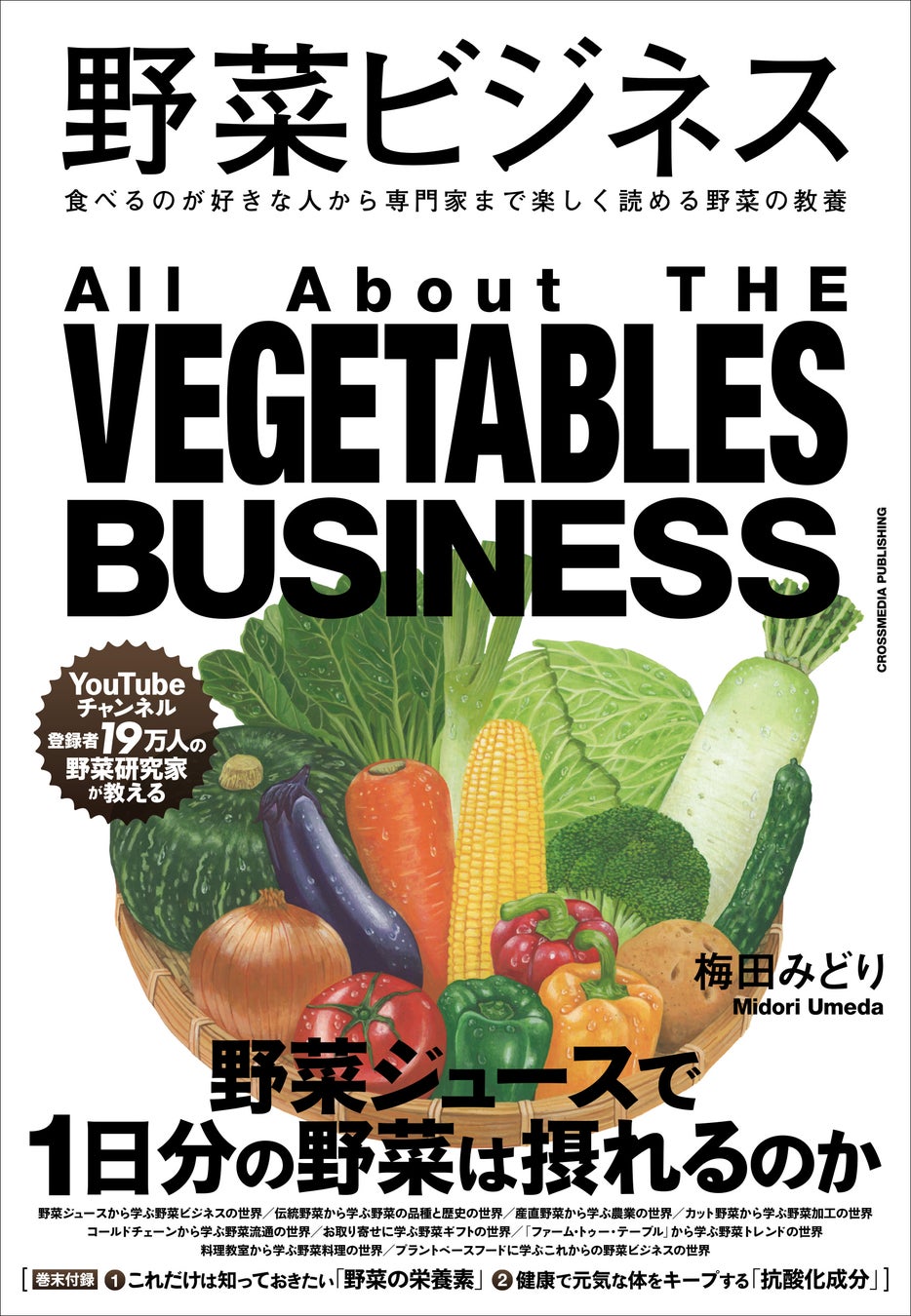 ビジネス書や実用書を中心に出版する株式会社クロスメディア・パブリッシング(本社:東京都渋谷区、代表取締役社長:東京・渋谷区、代表取締役・小早川幸一郎)は、2024年5月24日に書籍『野菜ビジネス』を刊行いたします。本書は新潟を拠点に野菜研究家、野菜ソムリエとして活動し、季節の野菜中心の料理レシピを、料理教室やYouTubeチャンネル(登録者数19万人)で公開している梅田みどり氏による、幅広く「教養としての野菜」を学ぶことができる一冊です。