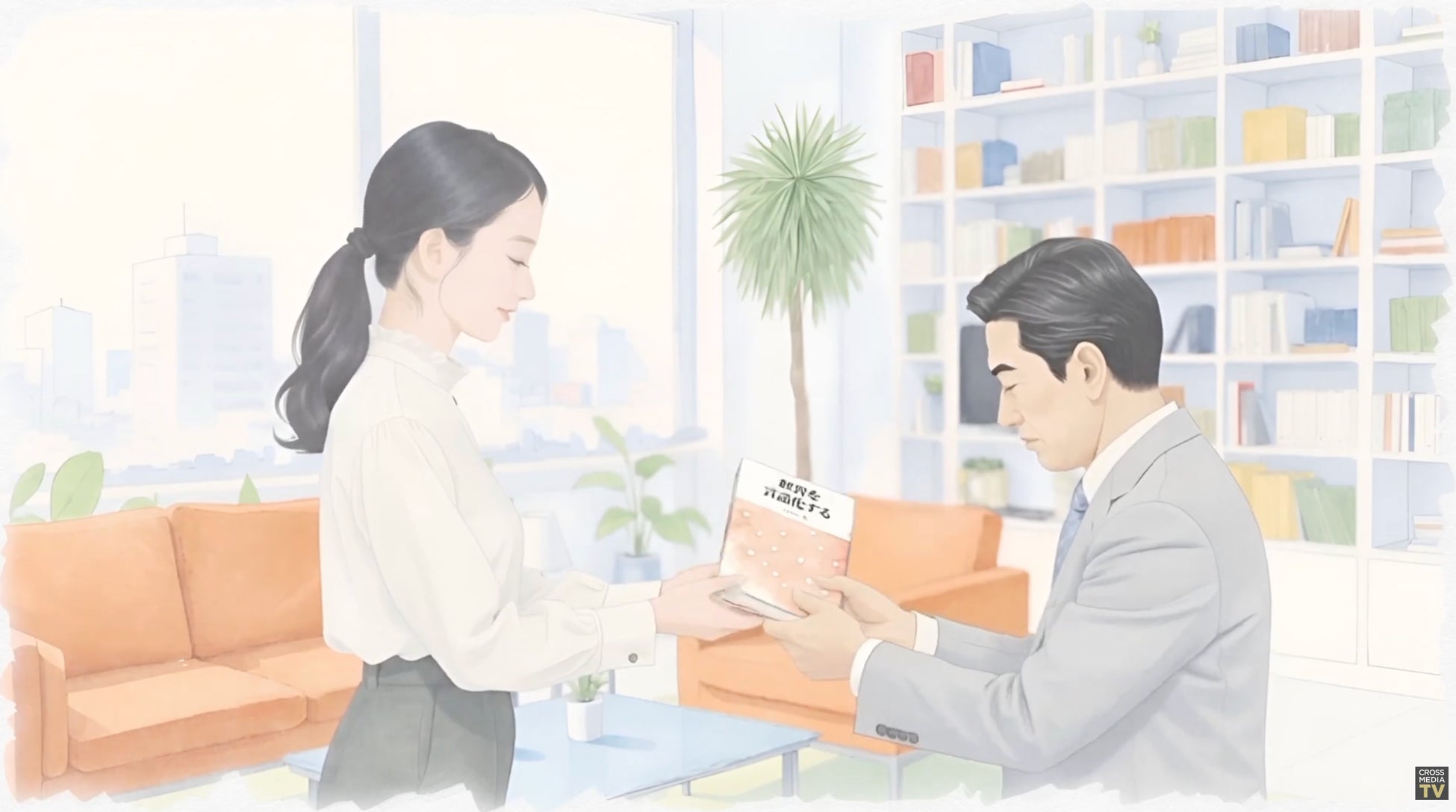 著者の想いを引き出しながら、一冊の本を完成させていく姿を通じて、クロスメディアが大切にしてきた顧客に向き合いながら、「編集力で情報価値を最大化する」姿勢を表現しています。