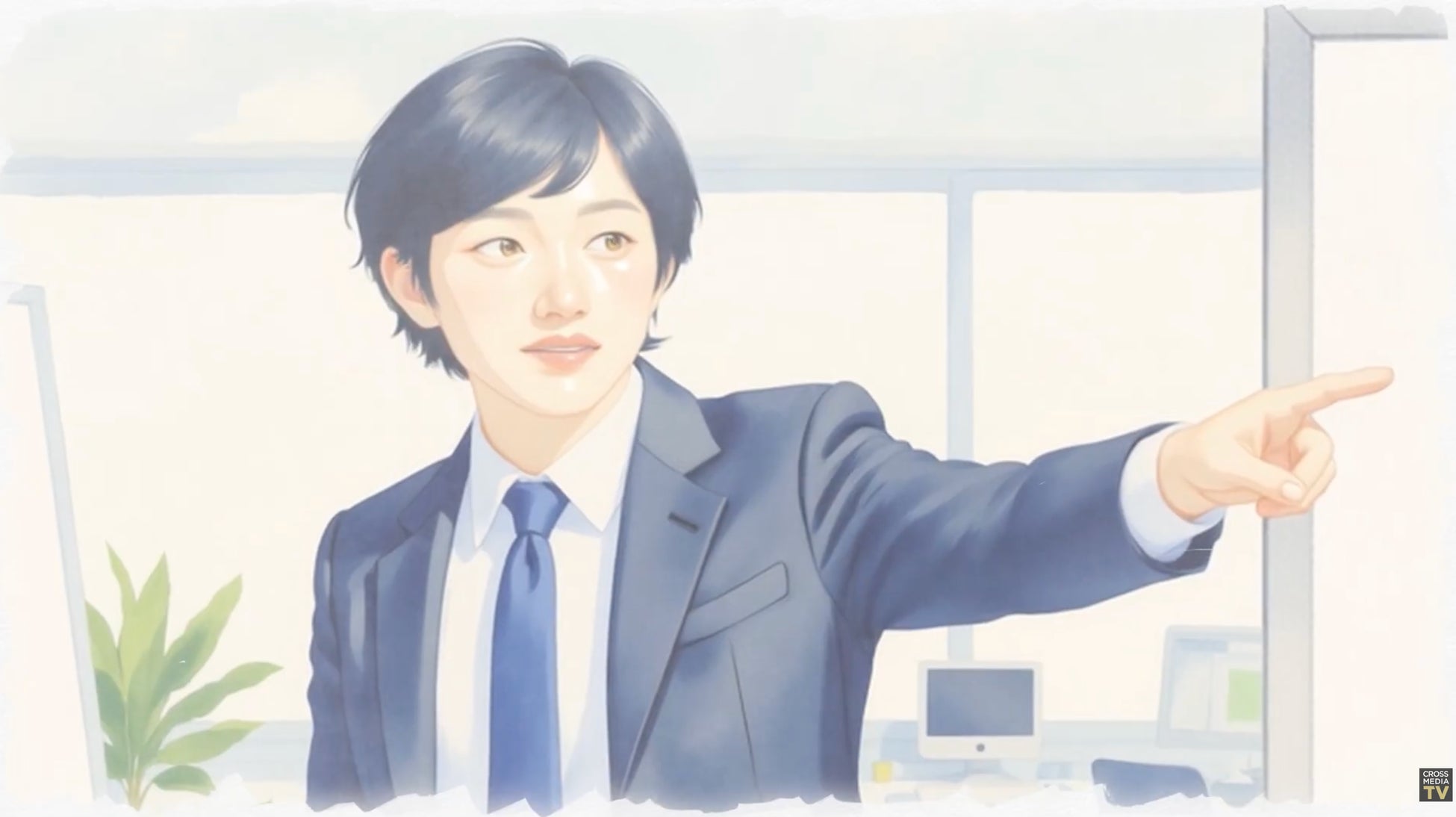 クロスメディアの20周年を記念して制作されたコーポレートムービーは、AIを活用して表現された約1分のイメージ映像で、若手社員の姿を通じて会社の想いを描いています。